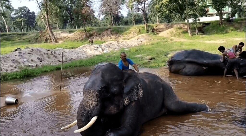 हाथी महोत्सव के पहले दिन हाथियों को सुबह-सुबह चरण गंगा नदी में स्नान कराया गया। जहां पानी में हाथी मस्ती करते हैं। कैंप में वापस लाकर नीम एवं आरंडी के तेल से उनकी मालिश की जाती है। वन्य-जीव विशेषज्ञ डॉक्टर्स डीवार्मिंग, पैर एवं दाँतों की देखभाल करते हैं। इस दौरान हाथियों को चंदन लगाकर सजाया गया। उन्हें पसंदीदा भोजन गन्ना, नाशपाती, नारियल, गुड़, मक्का, केला, सेव, अमरूद तथा रोटी परोसी जाती है। डॉक्टर द्वारा उनकी डाइट तय की जाती है, जिसमें खनिज आहार, पारंपरिक भोजन और ऊर्जा प्रदान करने वाले खाद्य पदार्थ शामिल किए जाते हैं। भोजन के उपरांत दोपहर से शाम तक के लिए इन्हें खुले जंगल में छोड़ दिया जाता है। इस दौरान वे कीचड़ स्नान, तालाब में जल क्रीड़ा तथा वन भ्रमण का आनंद लेते हैं। हाथी महोत्सव में आम नागरिकों के लिए पार्क सीमा में आवाजाही की अनुमति रहती है। सुबह 10 बजे से दोपहर 3 बजे तक लोग इनकी पूजा एवं भोजन खिलाकर दर्शन करते है।