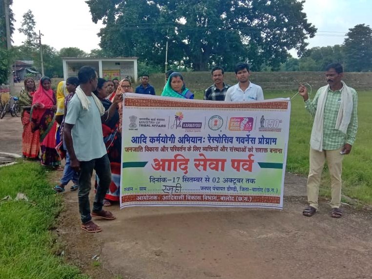 केन्द्र सरकार के महत्वाकांक्षी आदि कर्मयोगी अभियान के अंर्तगत 17 सितंबर से 02 अक्टूबर तक आयोजित होने वाली आदि सेवा पर्व के अंतर्गत जिले के विभिन्न आदिवासी बहुल ग्रामों में बड़ी संख्या में जनजातीय परिवार के लोगों ने अपनी उपस्थिति दर्ज कर कार्यक्रम में सक्रिय सहभागिता सुनिश्चित की है। इस दौरान वालंटियरों एवं संबंधित विभाग के अधिकारियों द्वारा उपस्थित लोगों को शासन की विभिन्न जनकल्याणकारी योजनाओं की जानकारी भी दी। इसके साथ ही साफ-सफाई की विशेष महत्व की जानकारी देते हुए जनजागरूकता अभियान चलाते हुए स्वच्छता रैली भी निकाली जा रही है। इस दौरान जनजातीय परिवारों के गृह भेंट कर उन्हें शासन द्वारा मिल रही विभिन्न योजनाओं की जानकारी ली गई तथा उनकी समस्याएं सुनी गई। इस अवसर पर ग्रामीणों को आदि सेवा कर्मयोगी अभियान, आदि सेवा पखवाड़ा के महत्व एवं उद्देश्यों के संबंध में जानकारी देने के साथ जनजातीय अंचलों में स्वास्थ्य, शिक्षा, पोषण, कौशल विकास, आजीविका संवर्धन, स्वच्छता, जल संरक्षण और पर्यावरण सुरक्षा जैसी सेवात्मक गतिविधियां भी आयोजित की जा रही है। ज्ञातव्य हो कि आदि सेवा अभियान के अंतर्गत ट्राईबल विलेज एक्शन प्लान एवं ट्राईबल विलेज विजन 2030 तैयार किया जाएगा।